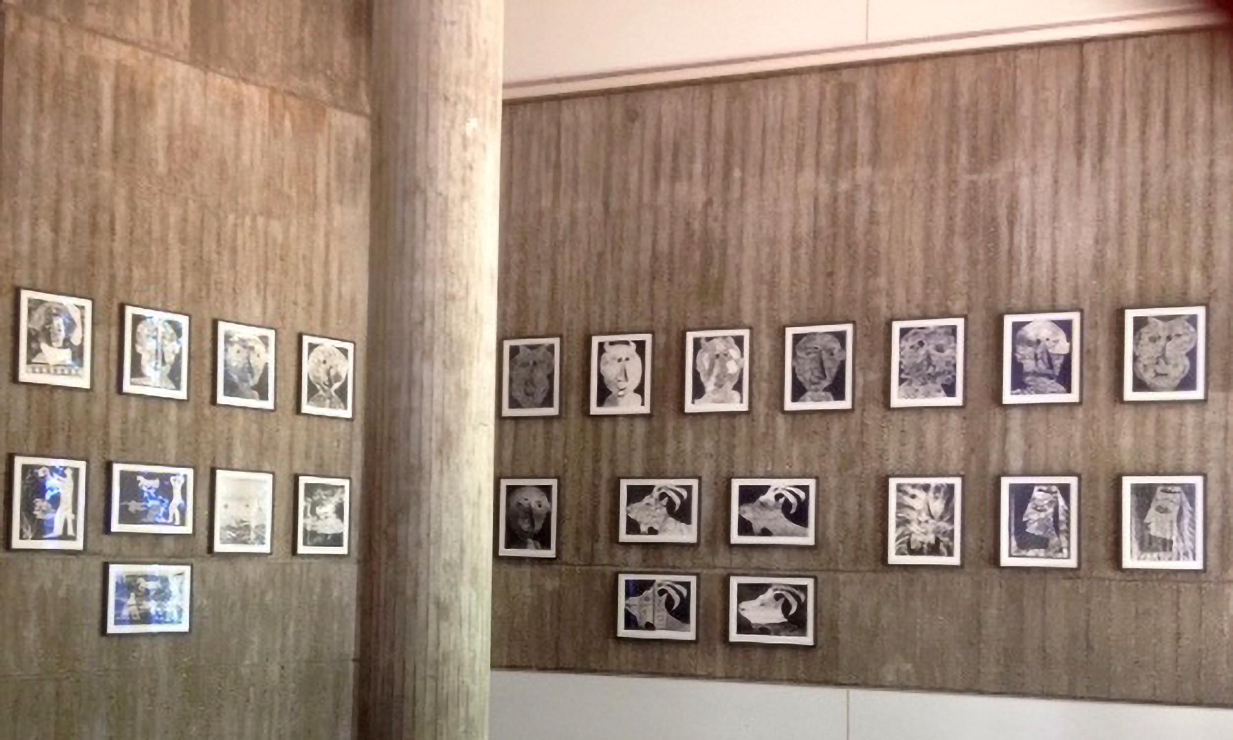 Hängung einer 30- teiligen Mappe „Diurnes“ im Sitzungssaal der Stadt Greven, Die 30 Arbeiten von 1962 sind eine Gemeinschaftsarbeit von Pablo Picasso mit dem Photographen André Villers. Die Mappe enthält 30 Photoabzüge, über die Picasso Scherenschnitte gelegt hat.