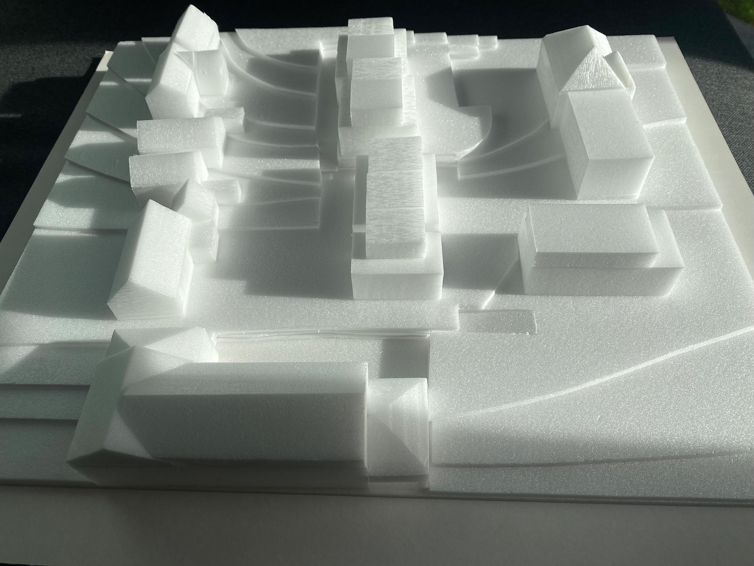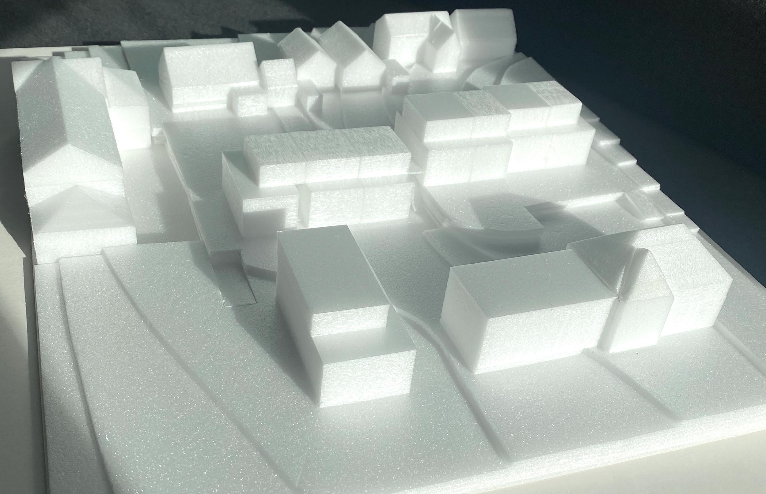 In Zusammenarbeit mit Maria Artkamp, artkamp.architecture, wurde für ein innerstädtisches Grundstück ein Bebauungsvorschlag und ein Landschaftskonzept entwickelt, das eine neue Bebauung mit dem Bestand verbindet. Inhalt des Entwurfs waren zwei Mehrfamilienhäuser mit 6 Wohnungen und 4 Reihenhäuser. Ein Teil der Grundstücke, für die noch kein B-Plan erstellt wurde, haben eine Höhendifferenz von bis zu 4,00 Metern zu überbrücken. Daher ist die neue Bebauung der Reihenhäuser auf den hügelähnlichen Grundstücken gegenüber den Nachbargrundstücken um 1,70 Meter herunter gesetzt worden und liegt damit unterhalb des höchsten Punkts des bestehenden Bürohauses.